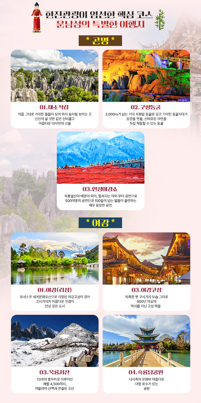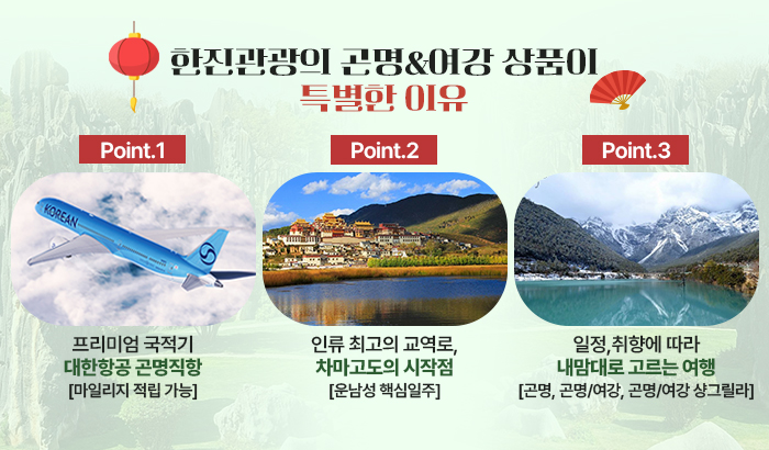 [찐한세일][곤명/여강 5일]영원한 봄이 머무는 곳- 옥룡설산,호도협,여강고성 #KE #고속열차